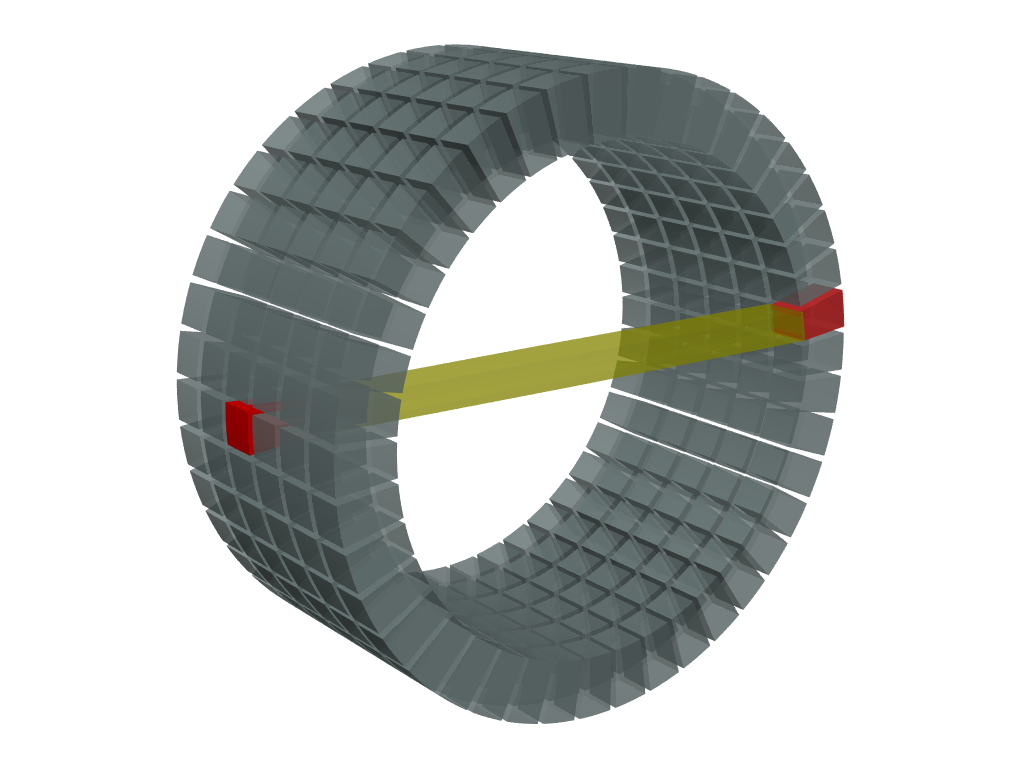 Schematic diagram of a PET camera and Line of Response tube. No relation to Norway whatsoever.